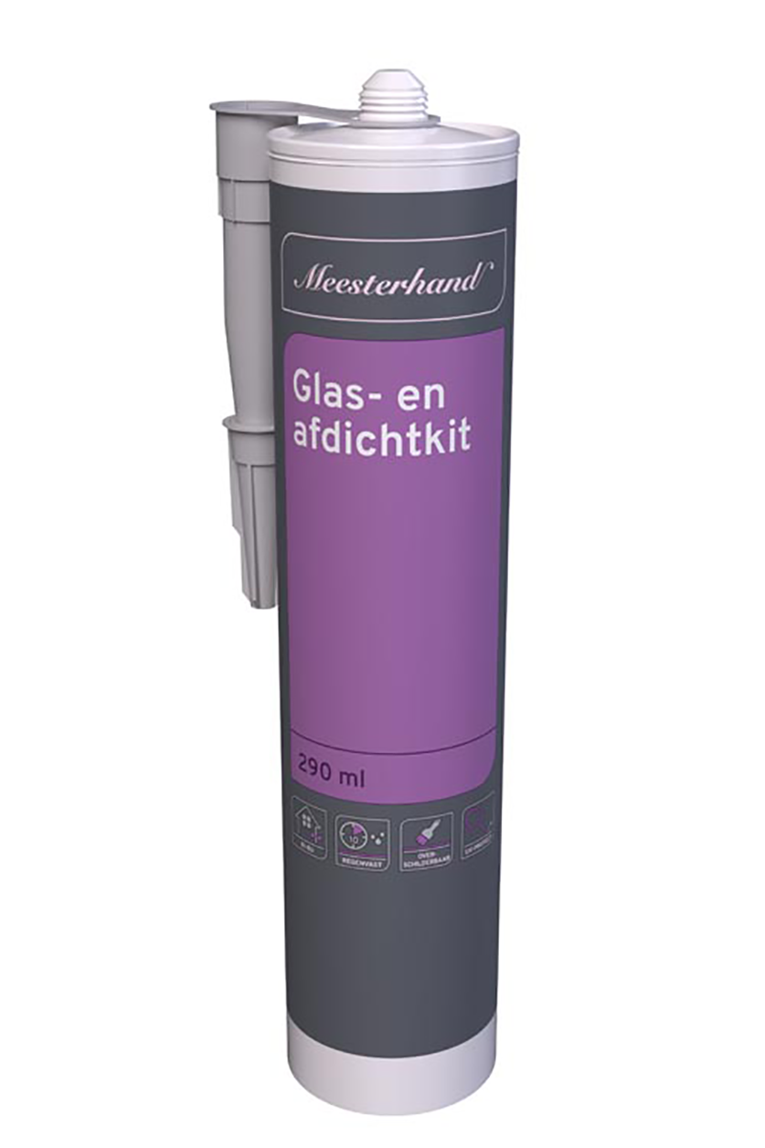 Meesterhand Glas- en afdichtkit is professionele afdichtingskit op basis van Hybride technologie.Algemeen· Voor het afdichten van beglazingssystemen, open verbindingen bij raam- en deurkozijnen, aansluitvoegen en dilatatievoegen· Binnen en buiten toepasbaar.· Overschilderbaar met vrijwel alle watergedragen- en synthetische verven.· Glad af te werken met daarvoor geschikte finishers