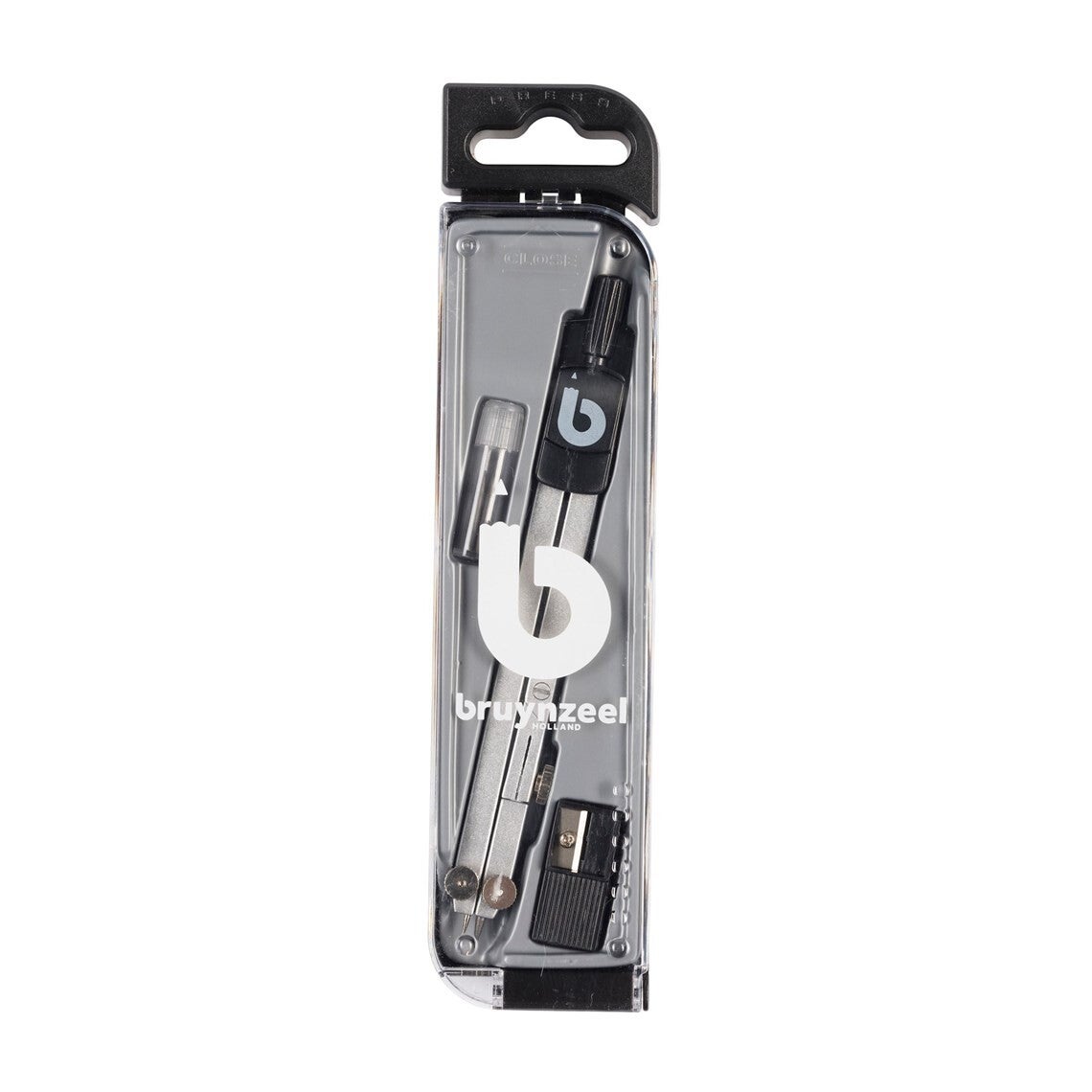 Met deze 3-delige passerset van Bruynzeel ben je volledig uitgerust en voorbereid op elke les waarin je een passer moet gebruiken. De verpakking bevat een passer, een puntenslijper en navullingen. Het kompas heeft een massieve stalen structuur en is makkelijk in het gebruik. Omdat de poten niet zo makkelijk buigen, zijn perfecte cirkels nu binnen handbereik! De plastic bewaarbox maakt het makkelijk om de set compleet te houden en beschermt je kompas in je tas of rugzak.
