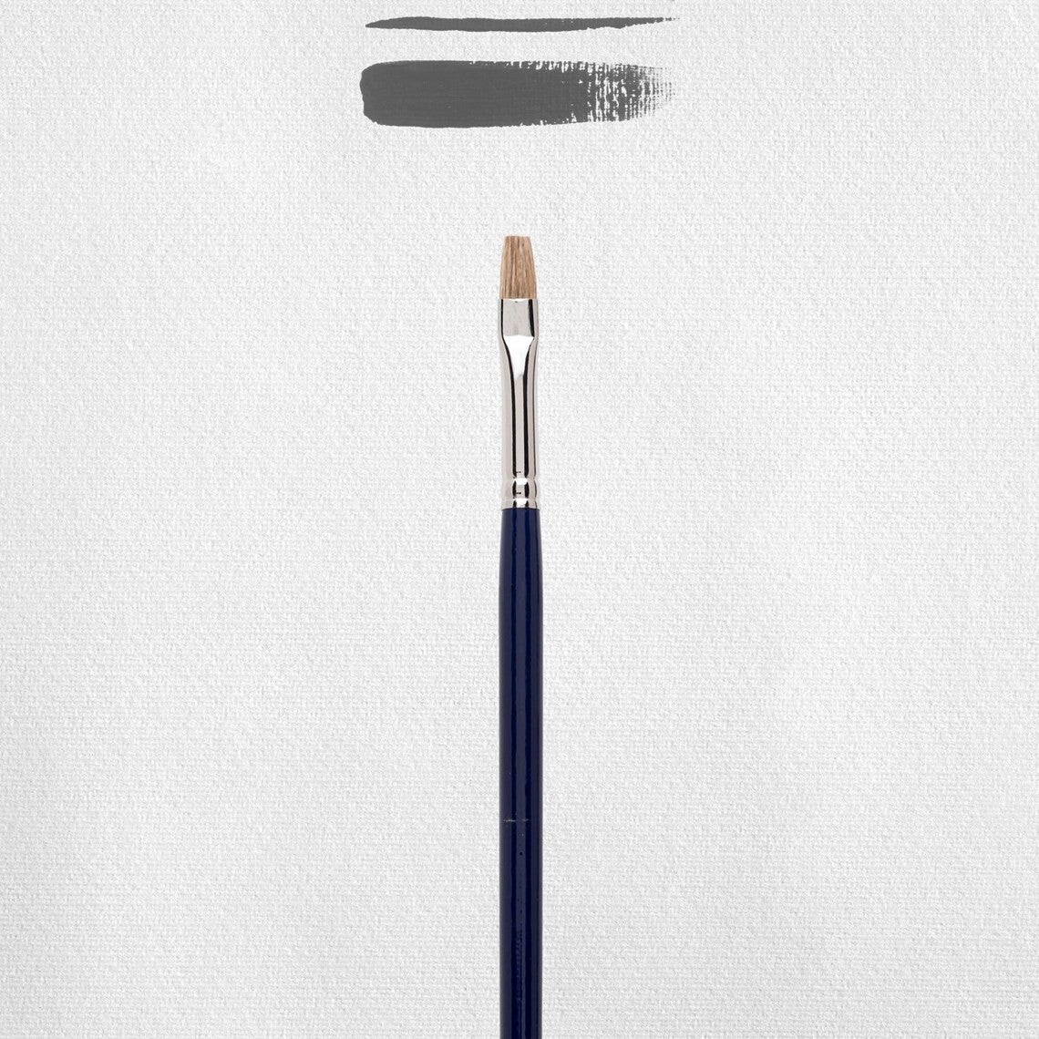 Dit met zorg gemaakte en met de hand gevormde penseel voor olie- en acrylverf heeft een flexibele haarbundel die bestand is tegen slijtage. Dit penseel van runderorenhaar houdt grote hoeveelheden kleur vast en is zeer geschikt om grote hoeveelheden verf over het doek te verspreiden. Dit penseel heeft een platte (Gussow) haarbundel voor het creëren van scherpe randen en rechte lijnen. De breedte van de haarbundel op dit penseel is 6,8 mm.
